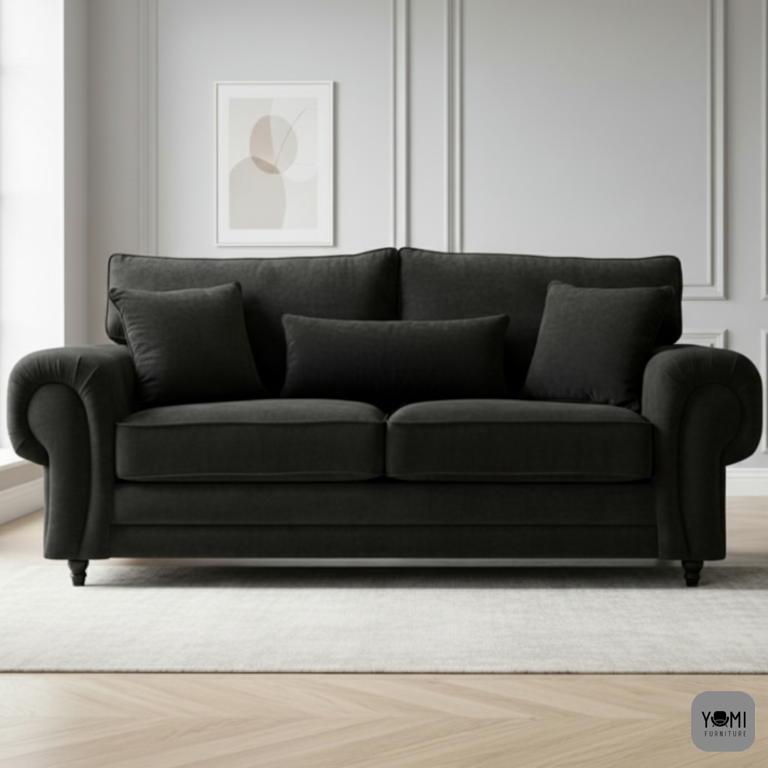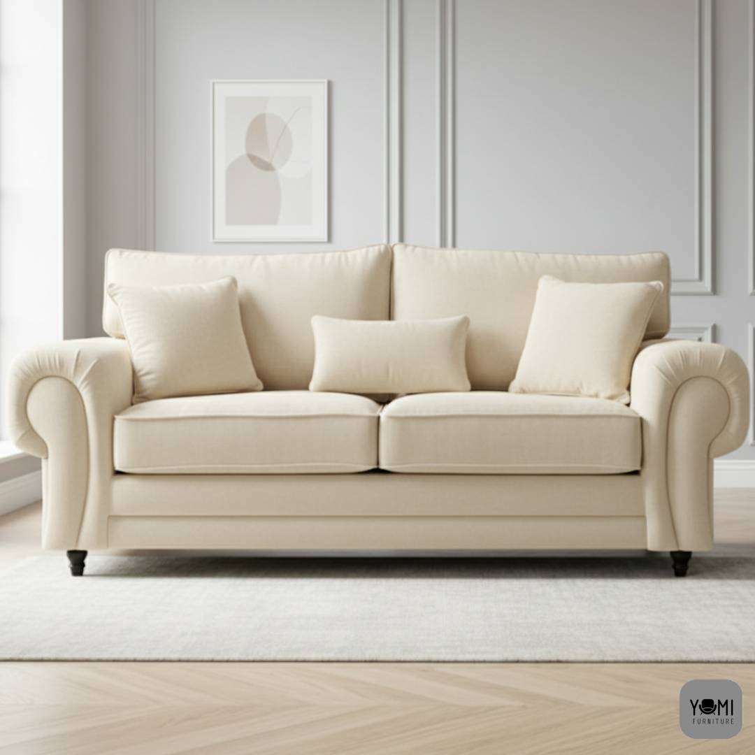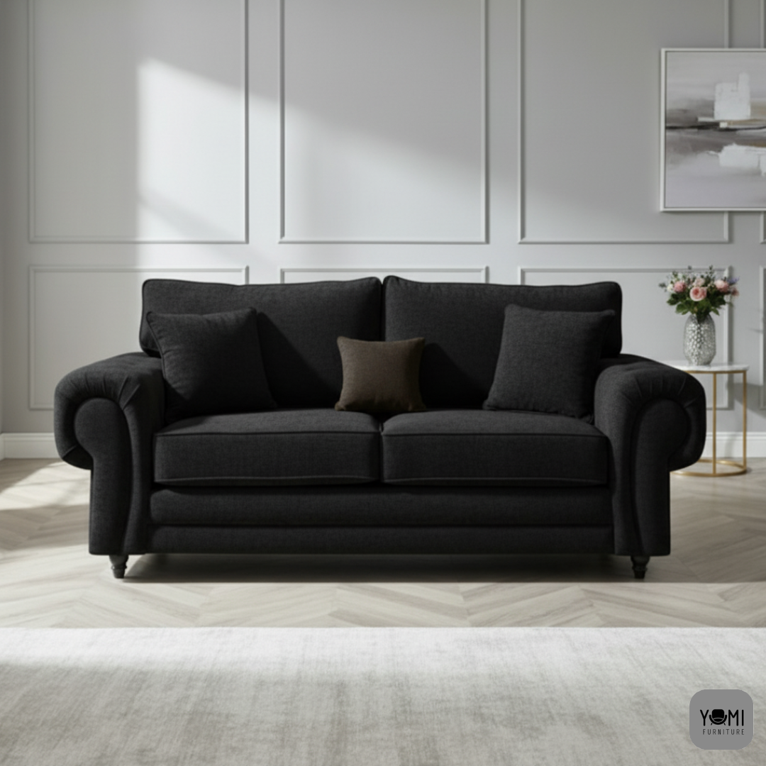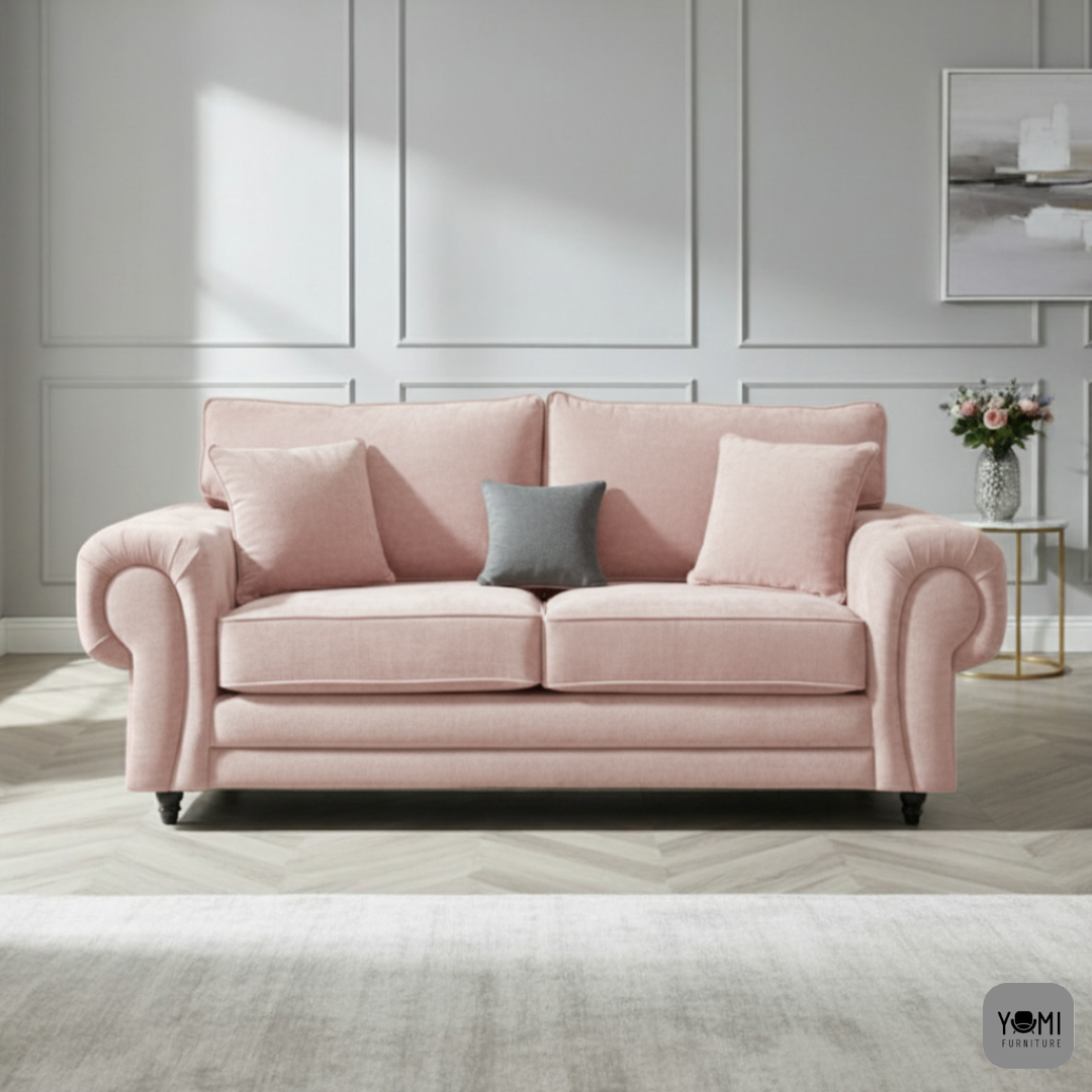 The Verona collection showcases a classic design with a modern twist. Its elegant rolled arms and distinctive button tufting add a touch of sophistication, while the clean lines and refined silhouette ensure it complements any decor. Upholstered in a premium, high-quality fabric, this sofa not only looks stunning but also feels incredible to the touch, standing up to the demands of everyday life.