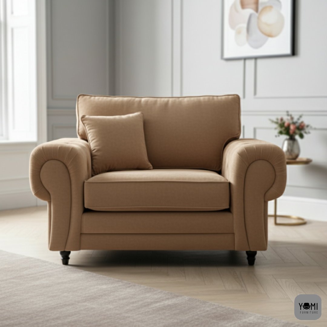 - Classic Details: Features elegant rolled arms and deep button tufting that provide a sophisticated, timeless look.